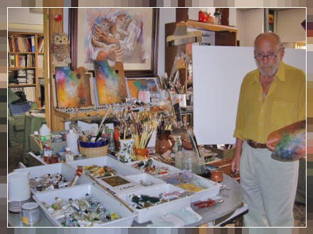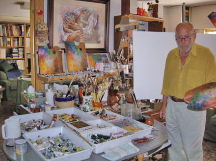 Este es el Estudio del pintor Fernando Escobar. En este bohemio espacio es donde el artista pasa muchas horas del día, rodeado de sus pinceles, bocetos, cuadros e ideas.